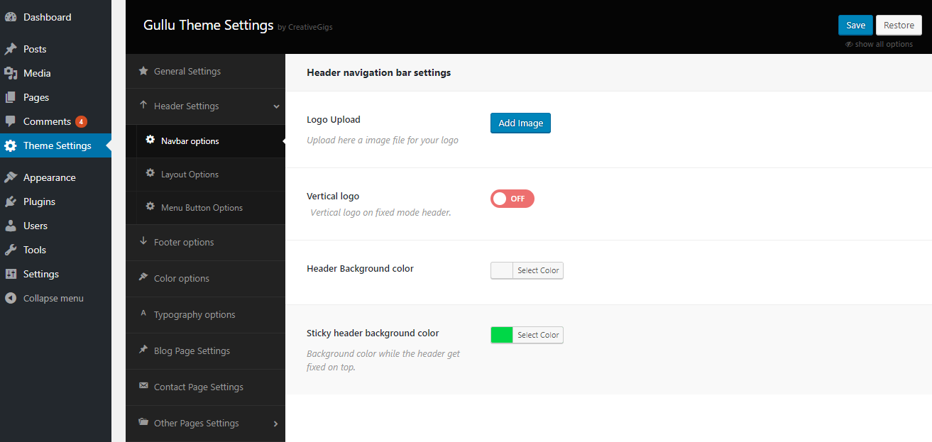 Header Settings Estimated reading: 1 minute 299 views In the Header settings section, you will get a lot of header customization options. In this section, you can change the logo and set the menu button, navigation bar settings etc.